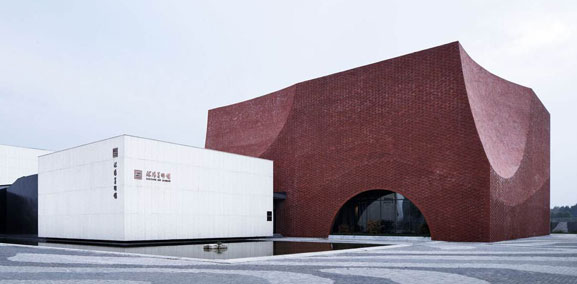 美術(shù)館的主體建筑由建筑大師、浙江大學(xué)建筑設(shè)計研究院院長董丹申領(lǐng)銜設(shè)計,設(shè)計理念從沭陽作為“中國書法之鄉(xiāng)”入手,以墨、紙、印的黑、白、紅作為建筑顏色元素,以中國書畫的虛實、輕重、疏密、開合、聚散等章法關(guān)系來布局建筑空間。