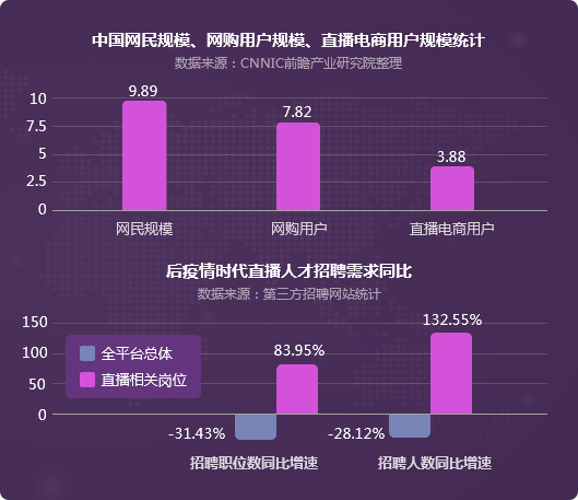 目前我國(guó)中國(guó)直播電商用戶規(guī)模已接近4億,占網(wǎng)民整體的39.2%,與此同時(shí),行業(yè)人才需求也大幅上漲。
